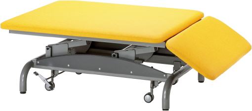 Wie auch bei dem Gymnastiktisch-REHA ist die Behandlung durch den Therapeuten auf dem Gymnastiktisch dank der enormen Stabilität schwingungsfrei möglich. Ebenfalls beinhaltet auch der Großflächentisch-PRAXIS ein "zentrales Rollenhebesystem", durch das die Liege mittels einem Tritthebel rechts und links des Tisches auf alle 4 Rollen gestellt werden kann. Die Polsterflächengröße ist durch das Kopfteil auf 200 x 120cm festgelegt.