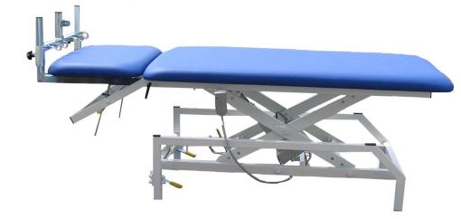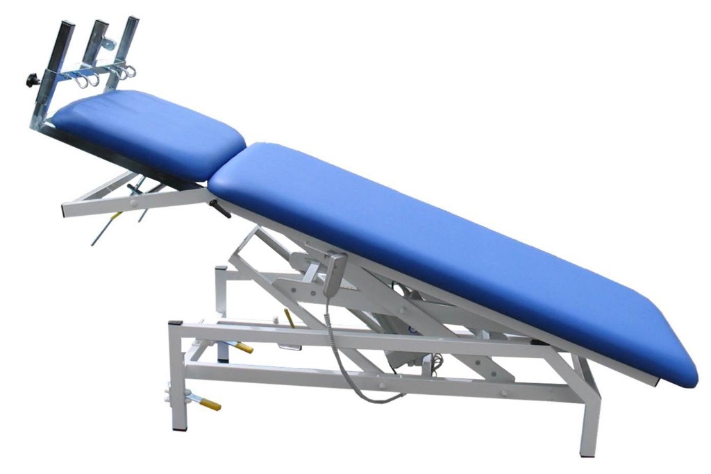 Ein fast lotgerechter elektromotorischer Scherenhub, eine Schrägstellung die nur aus unterster Position der Liege (manuelle Fußentriegelung) möglich ist, Einschub des Extensionsgalgen beidseitg im Liegenpolsterrahmen (stabil und wackelfrei), Kopfteilverstellung positiv und negativ über Stabverstellung.
