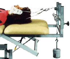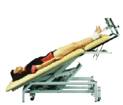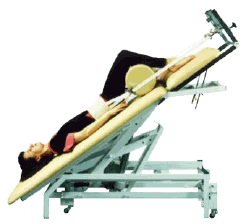 Die Glisonschlinge ihr Einsatz versteht sich auf der Ex-Kombi Liege STAUFENBERG mittels eines Gewichtsstockes. Sie sehen den Einsatz der Glison-Schlinge mit Kordelzug, Kopfbügel und 5kg Gewichtsstock. |