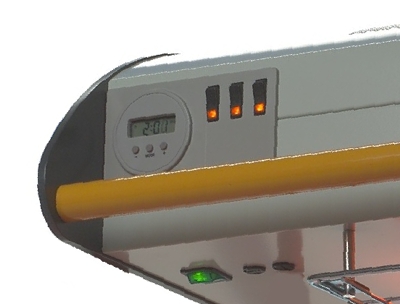 Jede der 3 Infrarotlampen kann einzeln eingeschaltet werden, um dem Therapeuten die Möglichkeit zu geben, daß Einsatzfeld optimal zu bestimmen. Der Hauptschalter trennt das Gerät bei Bedarf vom Netz. Ein Lampenwechsel lässt sich Problemlos über das ausklinkbare Berührungsschutzgitter vornehmen.