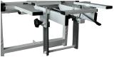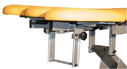 Die Armteilrahmen (tragen das Polsterteil) laufen beidseitig des Kopfteiles auf Linearschienen. Die Klemmung erfolgt in der Mitte der Schiene und "berührt" die Gleitschienen nicht. Für die Feststellung ist keine Kraft erforderlich. Zur Stabilität sind beide Schienen am Ende durch einen Rundstab verbunden, dieser verhindert gleichzeitig, dass die Armteile aus der Schiene fallen können.