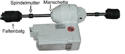 Der Oberrahmen (Polsterrahmen der VARIFLEX-Liege) setzt sich in unterster Position auf eine Stützstrebe auf ! Auf diese Position MUSS der elektromotorische Antrieb eingestellt sein ! Im Zuge einer STK-Prüfung (SicherheitsTechnischeKontrolle) muss geprüft werden ob der Antrieb SOFORT nach Aufsetzen des Oberrahmen abschaltet. Ist dies NICHT der Fall MUESSEN die Endschalterpunkte entsprechend eingestellt werden ! Ebenso sind die Endschalterpunkte einzustellen, wenn der Antrieb wegen eines defecktes ausfällt und ein neuer Antreib montiert werden muss. Gehen Sie wie nachgenannt vor: Der Faltenbalg wird mittels Kabelbinder auf der Manschette des Gehäuses befestigt, der Kabelbinder ist zu entfernen, damit der Faltenbalg die Motorspindel freigibt. Die Spindelmutter (rechts und links) funktionert als Endschalter. Durch drehen der Spindelmutter ist der Endschaltpunkt so einzustellen, daß der Antrieb abschaltet kurz bevor die Strebe des Oberrahmen auf den Unterrahmen aufsetzt. Mit dem Endschaltpunkt für den höchsten Hub ist genau so zu verfahren (die Aluminiumgehäuse dürfen auf der Stahlwelle nicht bis zum Anschlag fahren !). Danach ist der Faltenbalg mittels Kabelbinder wieder auf der beidseitigen Gehäusemanschette zu befestigen ! Fehlerhaft eingestellte Endschalterpunkte führen zur Zerstörung des Antriebes !! Die Einstellungen des MULTIMAT-Antriebes sind jährlich im zuge der STK-Prüfung zu kontrollieren und bei Bedarf zu berichtigen !