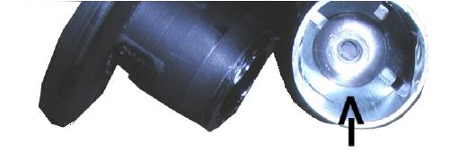 Im Chromrohr sehen Sie die hintere Federscheibe. Mit einem stumpfen Gegenstand können Sie die Scheibe (incl. Feder) weiter nach "vorne" drücken !